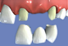![]() After fabrication the bridge is cemented to the prepared teeth. |