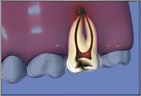 ![]() The cleaned spaces are filled with a biocompatible material and cement to ensure sealing of the root canals. |
